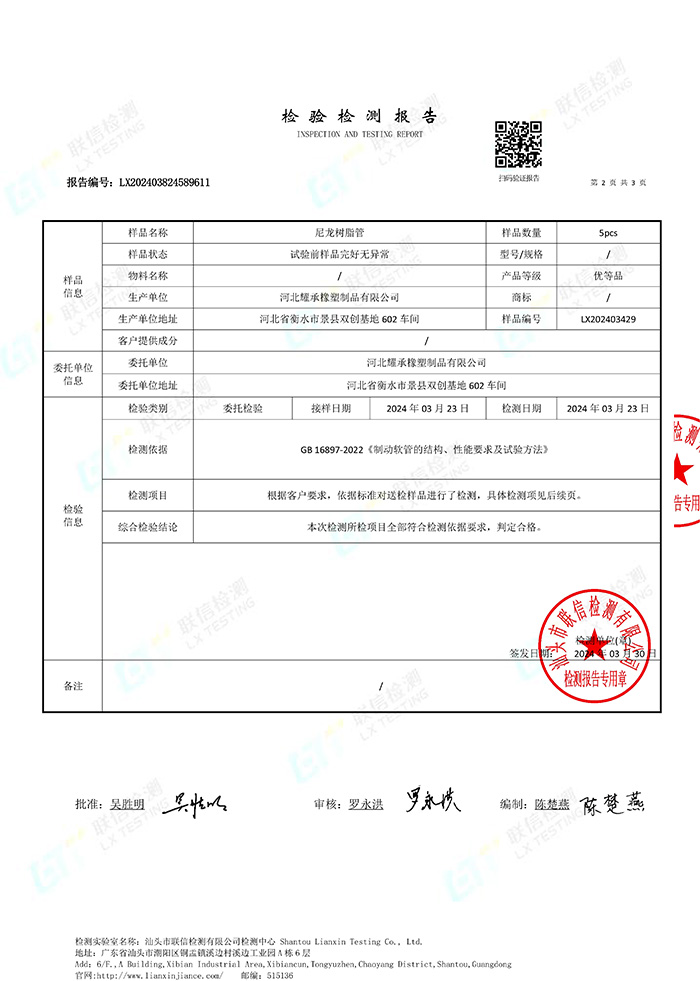 尼龍樹脂管檢測報告